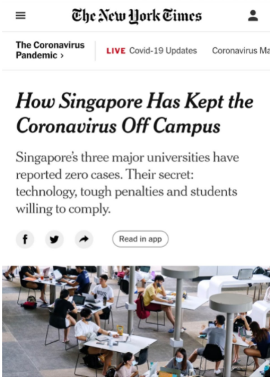 This has been achieved with the help of projects such as Singapore Spacer as well as the collective efforts of campus communities. Prof. Michael Chee speaks to the New York Times on this subject